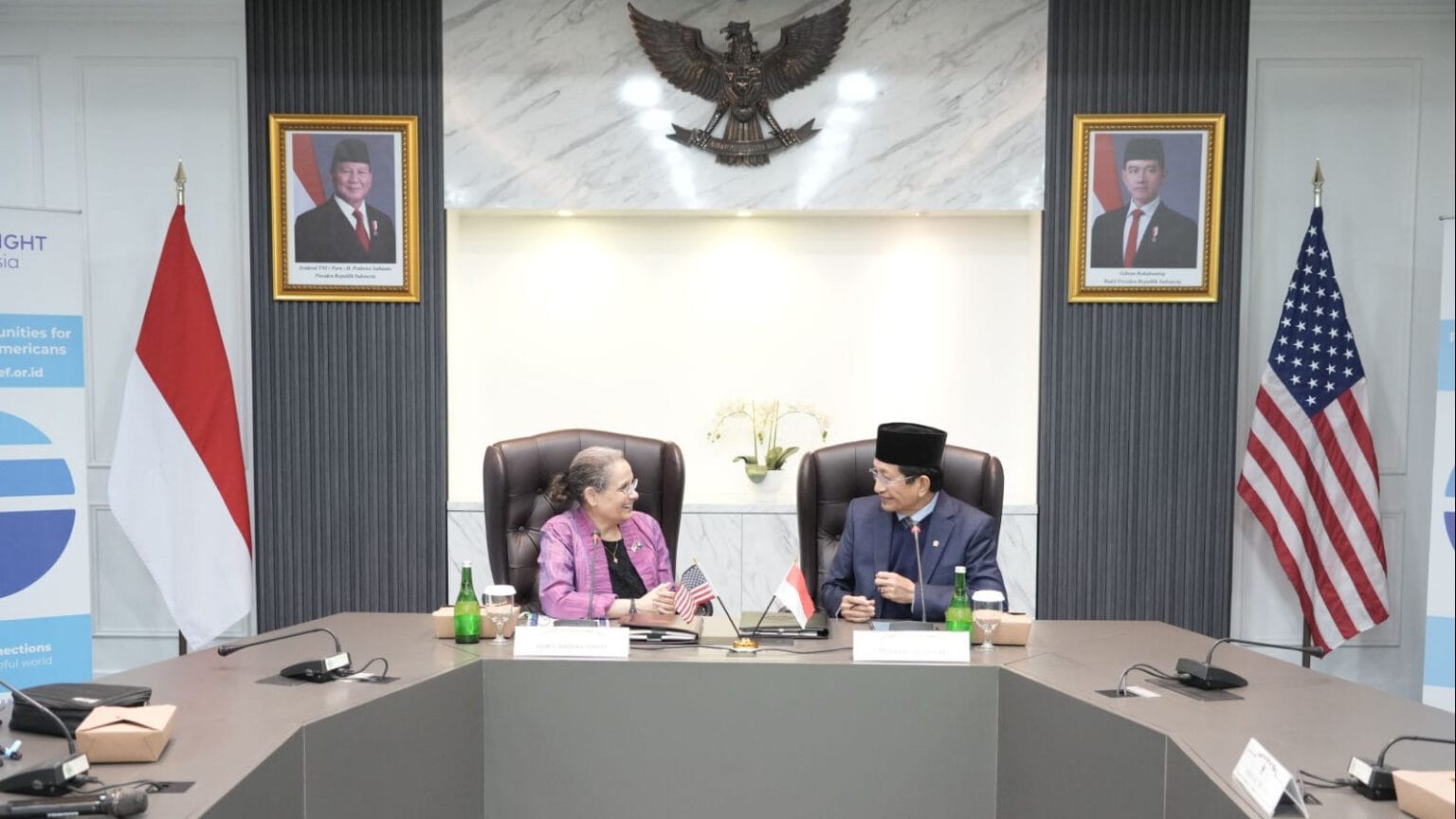 Kesepakatan ini ditandatangani Menteri Agama Republik Indonesia Nasaruddin Umar bersama Duta Besar Amerika Serikat untuk Indonesia Kamala S. Lakhdhir di Kantor Kementerian Agama, Jakarta, Rabu (8/1/2025). Menag Nasaruddin menuturkan, dengan ditandatanganinya kesepakatan tersebut, maka banyak peluang yang dapat dilakukan dalam rangka peningkatan kualitas pendidikan keagamaan.