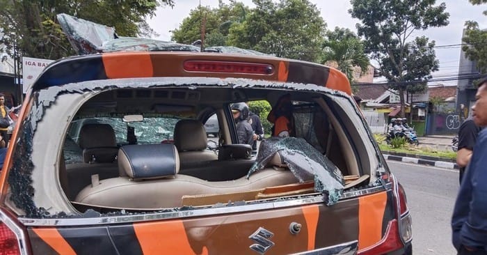 Di video itu juga terlihat massa yang datang ini langsung menyasar motor yang sedang terparkir di depan markas PP. Buntutnya kemudian, 6 orang mengalami luka dan 2 unit mobil hancur setelah kacanya rusak berserakan.
