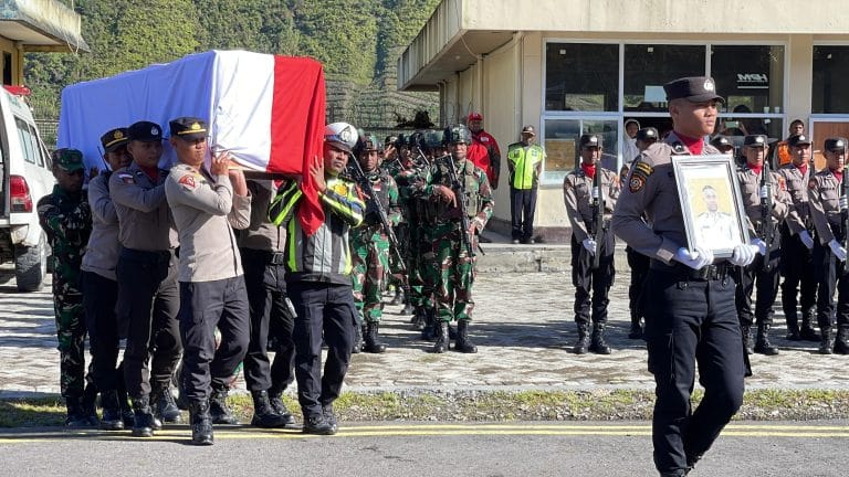 Breakingnewsbandung.com – PAPUA, Puncak Jaya | Mulia 22 Januari 2025- Jenazah Bripka (Anumerta) Ronald M. Enok, anggota Polres Puncak Jaya yang gugur dalam tugas, telah diterbangkan dari Kabupaten Puncak Jaya ke Bandara Sentani, Kabupaten Jayapura, pada Rabu, 22 Januari 2025. Prosesi penghormatan terakhir dilakukan di Mako Polres Puncak Jaya.