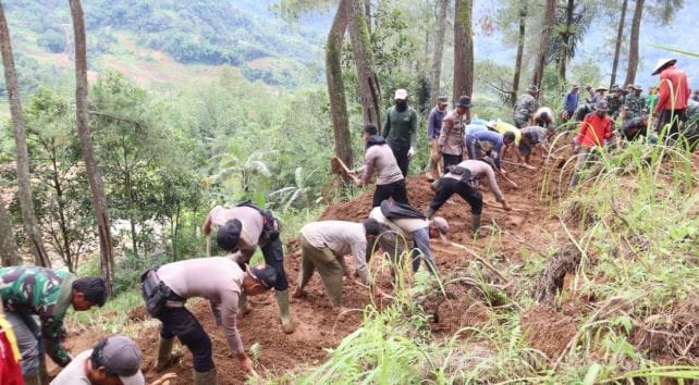Pasca Operasi SAR Dihentikan, TNI-Polri dan Warga Buka Akses Jalan Melalui Pembersihan Material Longsoran