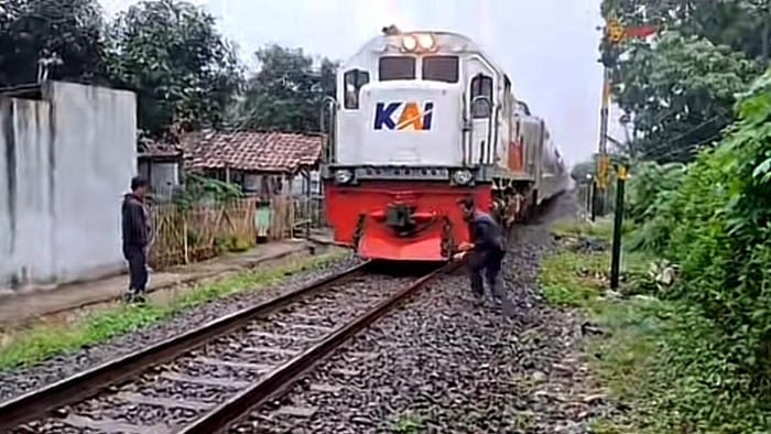 Bandung – Viral di media sosial memperlihatkan Kereta Api (KA) Lodaya yang mengalami kesulitan saat melintasi jalur menanjak di kawasan Nagreg, Kabupaten Bandung. Video yang diunggah akun TikTok @abah_asep9 memperlihatkan kereta berjalan lambat hingga akhirnya beberapa warga berinisiatif membantu dengan menaburkan pasir ke rel.
