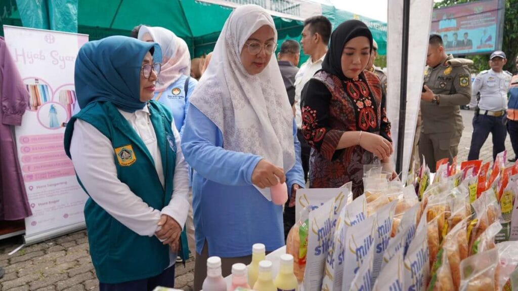 Breakingnewsbandung.com – KABUPATEN BOGOR | Dharma Wanita Persatuan (DWP) Kabupaten Bogor menggelar Bazar Menjelang Ramadhan 1446 H sebagai upaya meningkatkan ketahanan ekonomi keluarga serta mensejahterakan anggotanya. Acara ini berlangsung di Pelataran Gedung Tegar Beriman pada Senin (25/2/2025) dan diisi dengan berbagai produk unggulan dari anggota DWP, UMKM, dan masyarakat setempat.