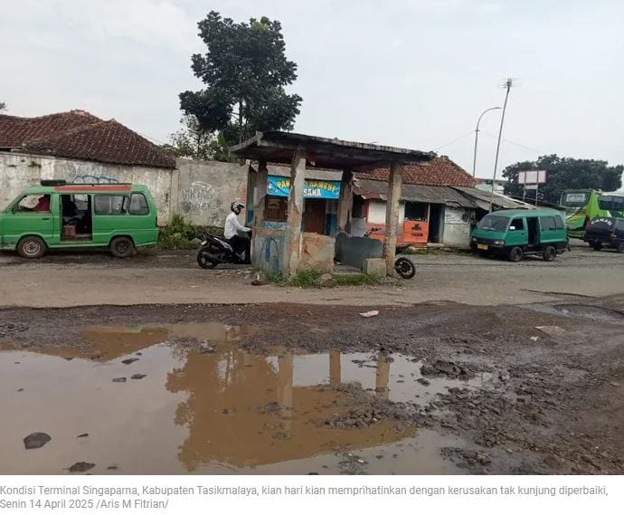 Breakingnewsbandung.com – KABUPATEN TASIKMALAYA | Kondisi Terminal Singaparna di Kabupaten Tasikmalaya semakin memprihatinkan. Meskipun menjadi pusat aktivitas ratusan kendaraan angkutan umum setiap harinya, terminal ini justru terabaikan dan mengalami banyak kerusakan. Lubang besar yang menganga di berbagai sudut area terminal membuat pengemudi kesulitan serta merasa tidak aman saat melintas. Saat musim kemarau, debu beterbangan dan mengganggu kenyamanan, sementara pada musim hujan, kubangan air menjadi pemandangan yang tak terhindarkan. Akibatnya, banyak sopir angkutan umum yang enggan masuk ke terminal dan lebih memilih untuk menunggu penumpang (ngetem) di luar area.